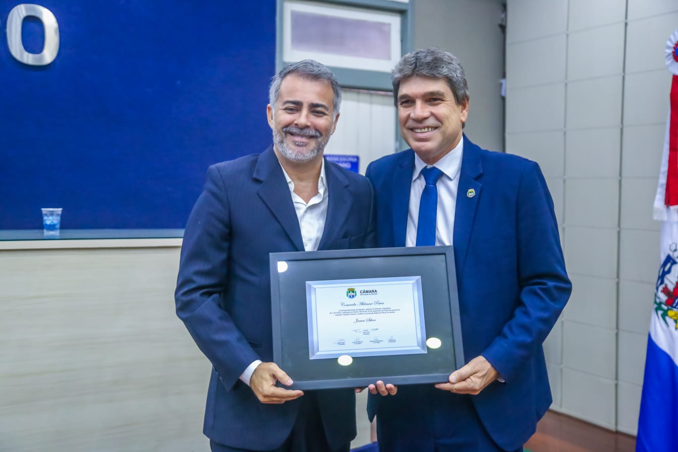 A Câmara Municipal de Maceió entregou, nesta quarta-feira (10), a Comenda Aldemar Paiva ao jornalista James Silver, diretor da Revista S.Mag, e a Comenda Senador Aurélio Viana ao reitor do Centro Universitário Unima Maceió, Gustavo Arruda.