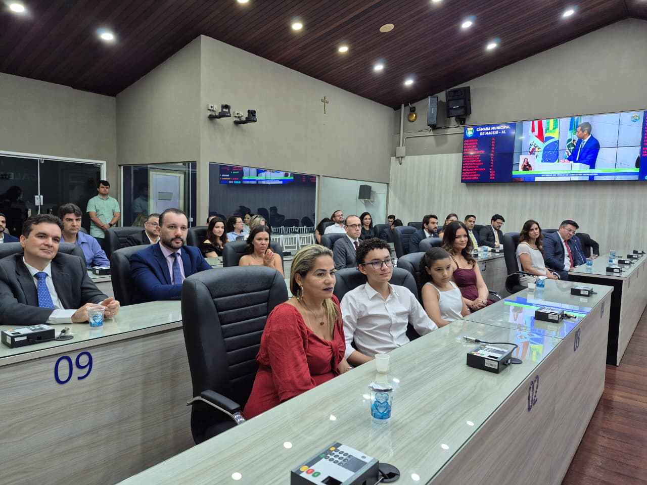 Antes de iniciar a entrega da honraria, o vereador Neto Andrade convidou para compor a mesa da sessão solene os juízes Sóstenes Alex Andrade, Hélio Pinheiro e Rafael Casado; o desembargador do Tribunal de Justiça de Alagoas, Tutmés Airan, e o secretário do Gabinete Civil da Prefeitura de Maceió, Felipe Lins.