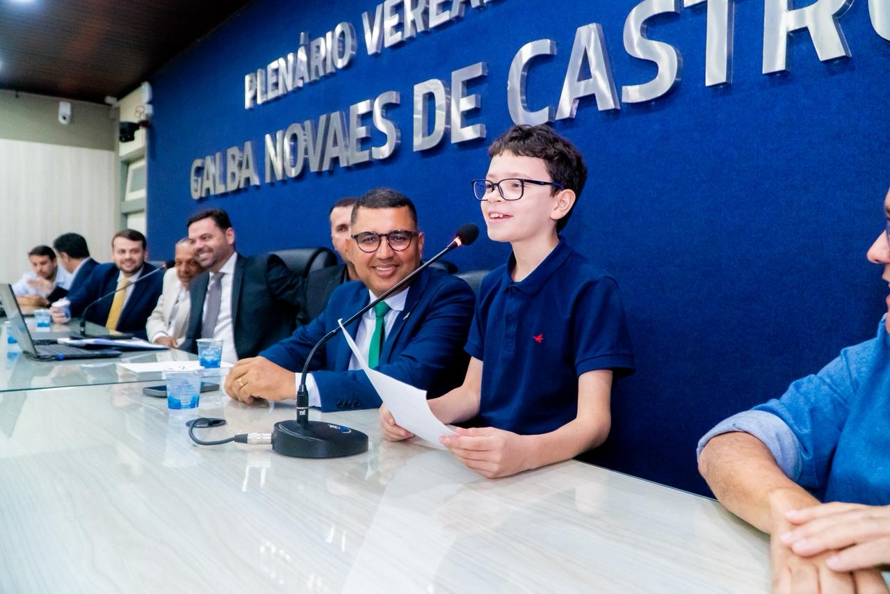 Durante um período da sessão solene, o presidente Chico Filho fez uso da palavra para ressaltar o trabalho de Gabriel Rodas e Ivens Peixoto.