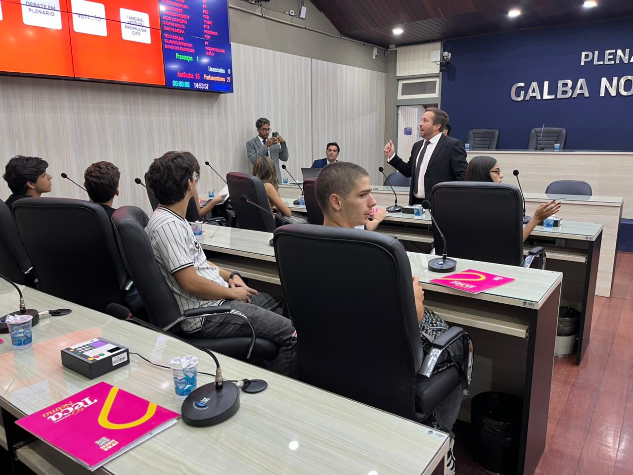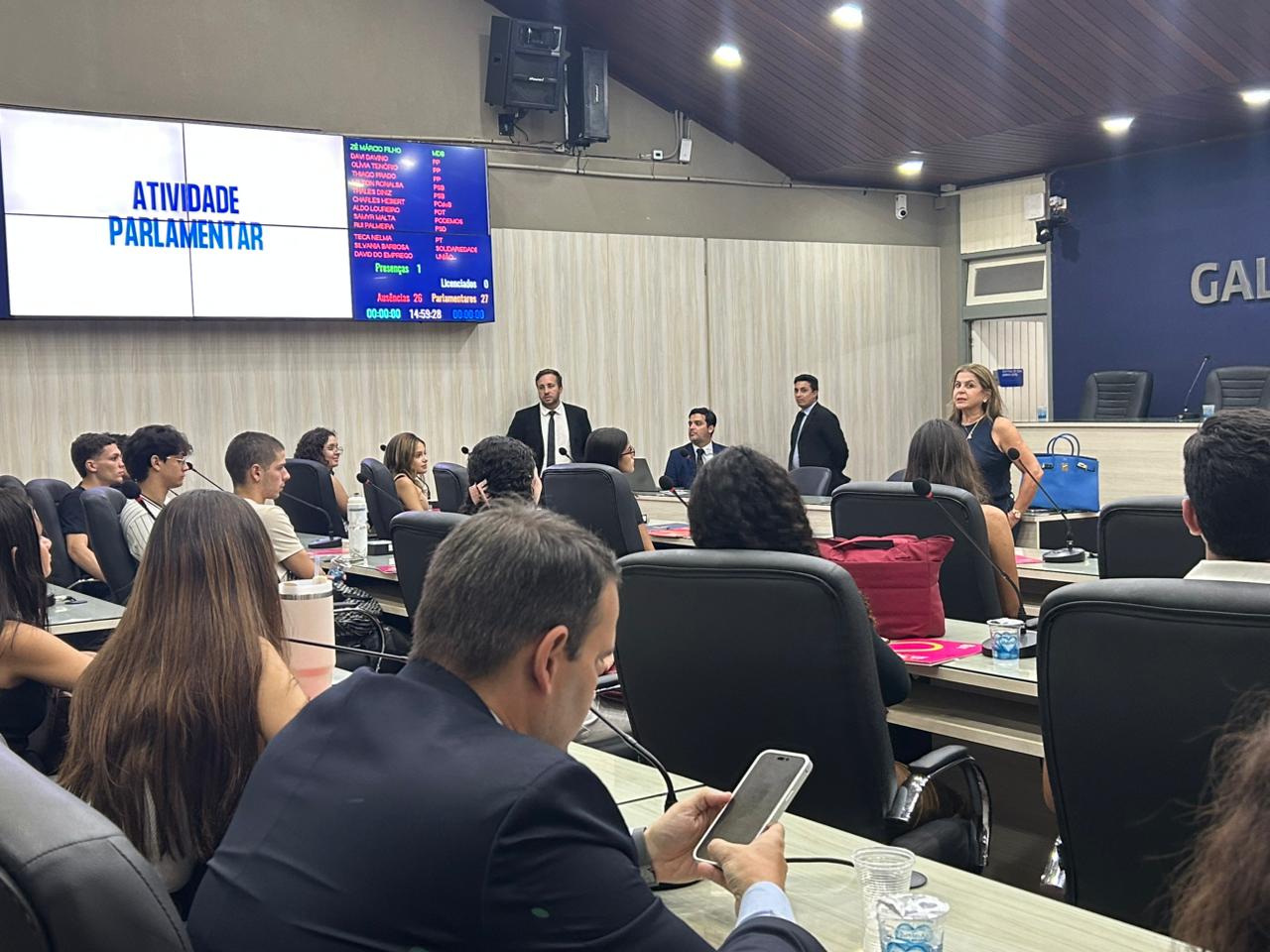 Em plenário, os estudantes de Direito da Ufal estiveram atentos ao que os servidores efetivos apresentavam sobre projetos de lei, ordem do dia, discursos, atuação e fiscalização parlamentar, atribuições tanto do parlamento quanto das comissões e audiências públicas, que também representam um canal de diálogo constante entre sociedade e Legislativo.