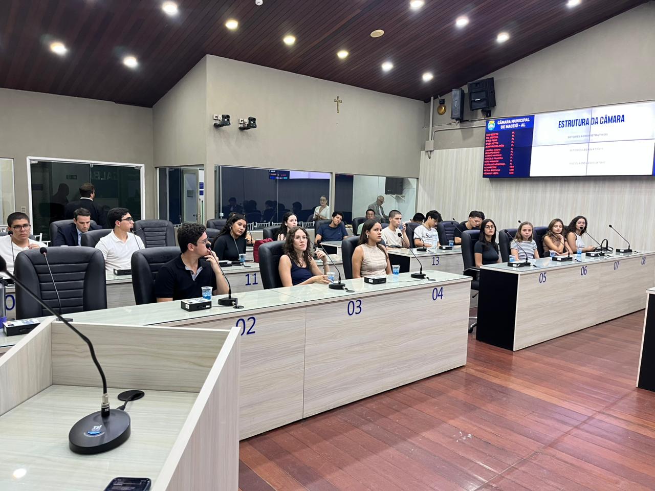 Iniciativa do Legislativo Municipal, a primeira edição do Circuito Câmara 2026 recebeu, no início da tarde desta terça-feira (24), os estudantes do curso de Direito da Universidade Federal de Alagoas (Ufal). Recém-chegados à universidade, os calouros conheceram as instalações da Casa, e foram até o plenário onde tiveram acesso a uma série de informações sobre o funcionamento da Câmara.