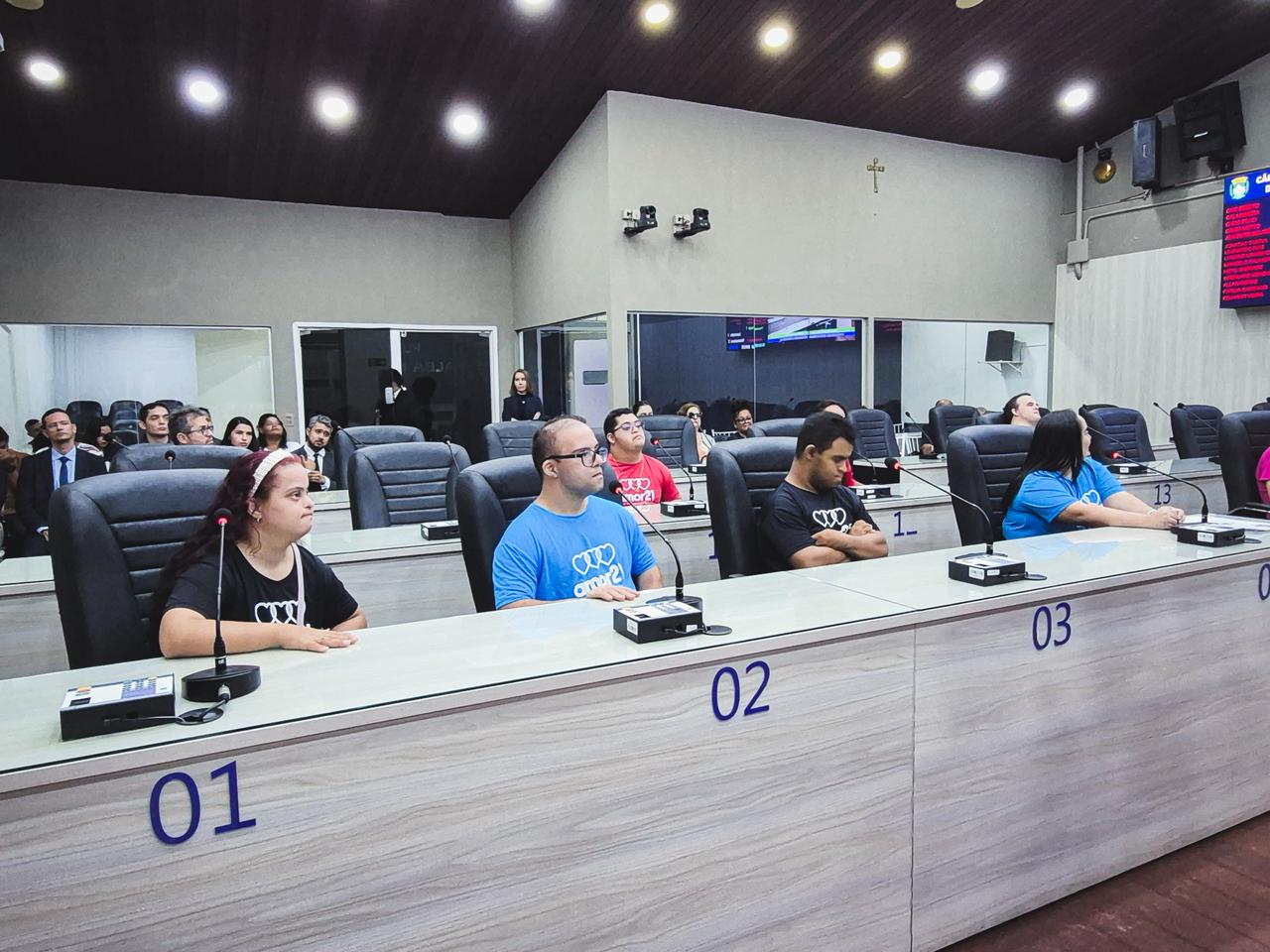 Grupo de pessoas com síndrome de Down e familiares foram recebidos no Circuito Câmara, conhecendo vereadores e o Legislativo